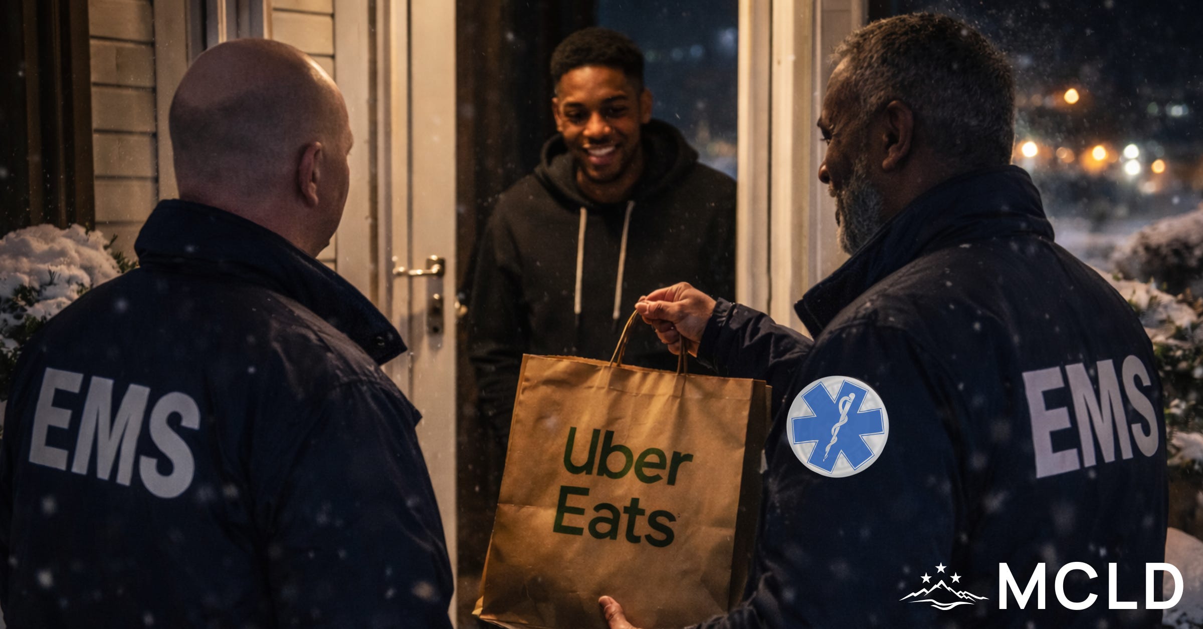 The recipient opened the door and froze when he saw two EMS providers holding his bag.